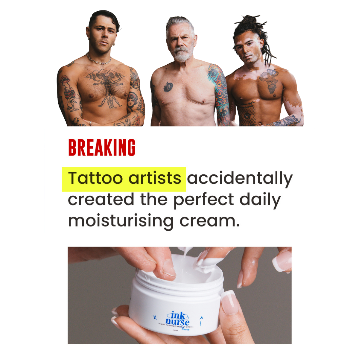 Ink Nurse stands at the forefront of skincare innovation by blending traditional botanical wisdom with modern scientific research. Its formulation harnesses the therapeutic properties of natural ingredients like organic aloe vera, chamomile, and bisabolol, known for their soothing and anti-inflammatory effects. Complemented by nourishing elements such as shea butter, jojoba, and rosehip oils, the cream supports skin barrier repair and hydration. This synergy of plant-based components and scientific insight ensures effective relief for various skin concerns, from tattoo aftercare to chronic conditions like eczema and psoriasis. Ink Nurse is always innovating and working on next-generation products, be sure to follow the social media channels and subscribe to the email newsletter to gain further insight about what's coming next.